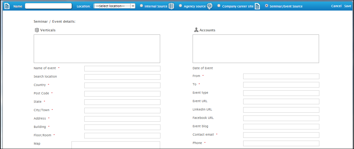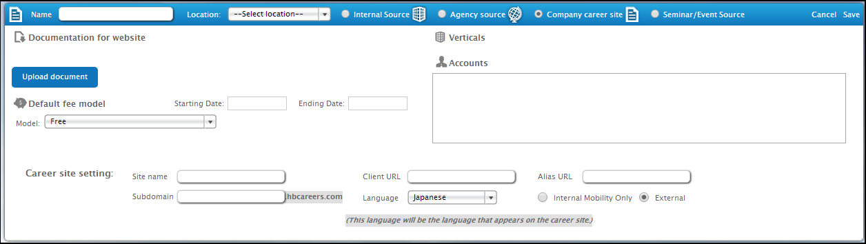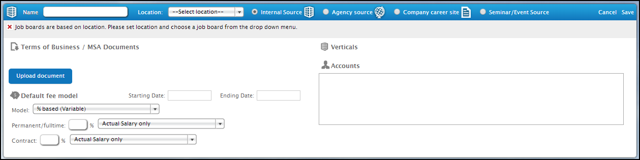 · Key in the name of your Candidate Source, choose your Location,
