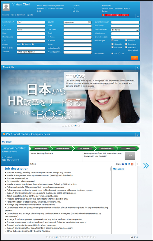 · After setting the candidate homepage, when a candidate login to the system, he/she will see the company info displayed in the center part of the page.
