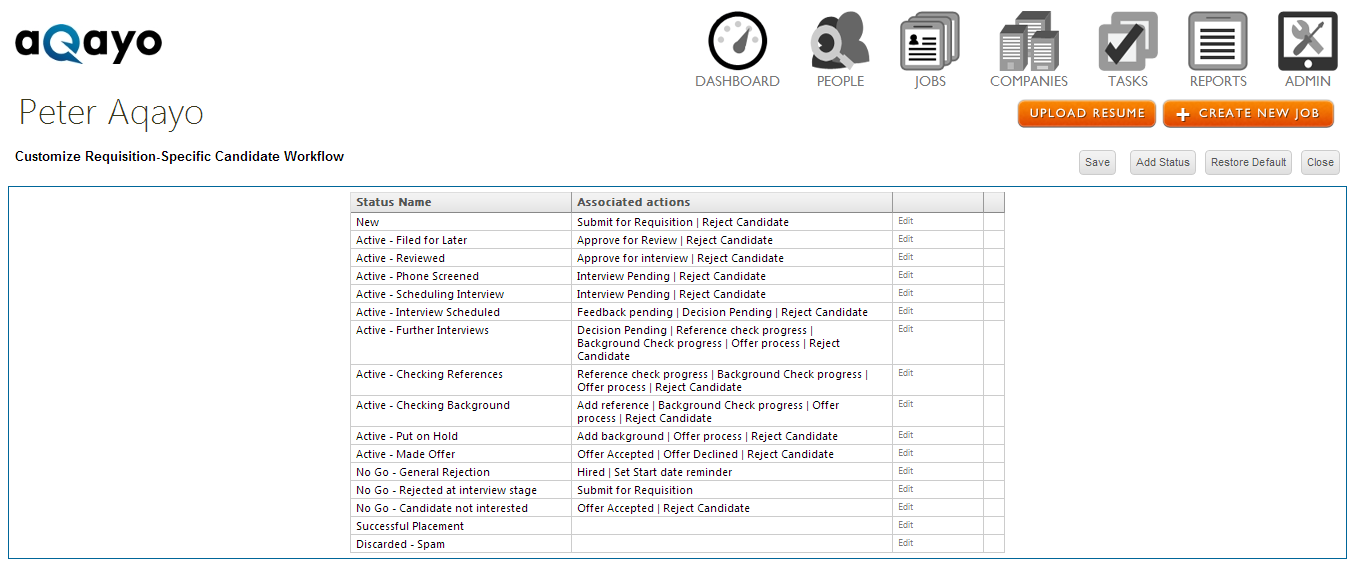 5. Type the new status name and check the boxes corresponding to the Actions that are required for this status.