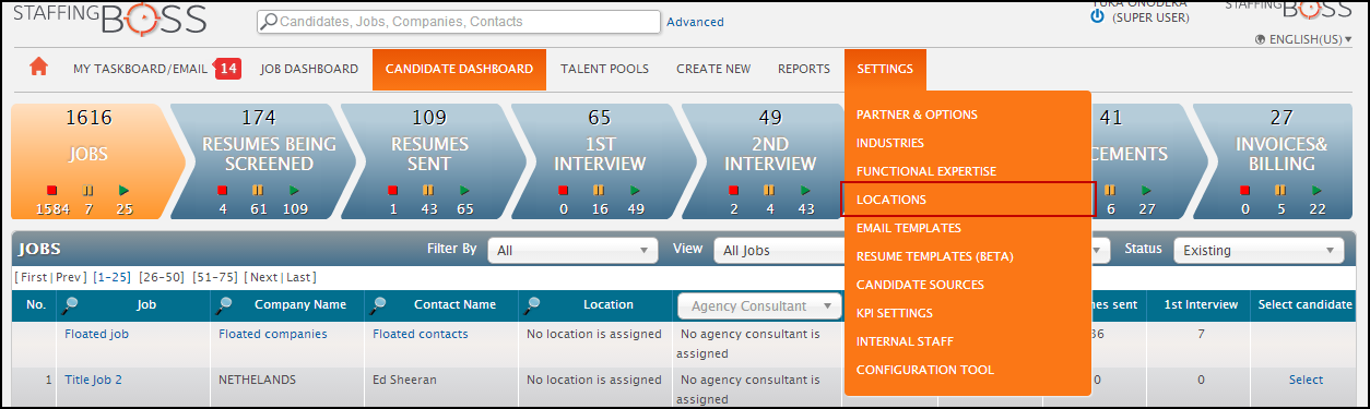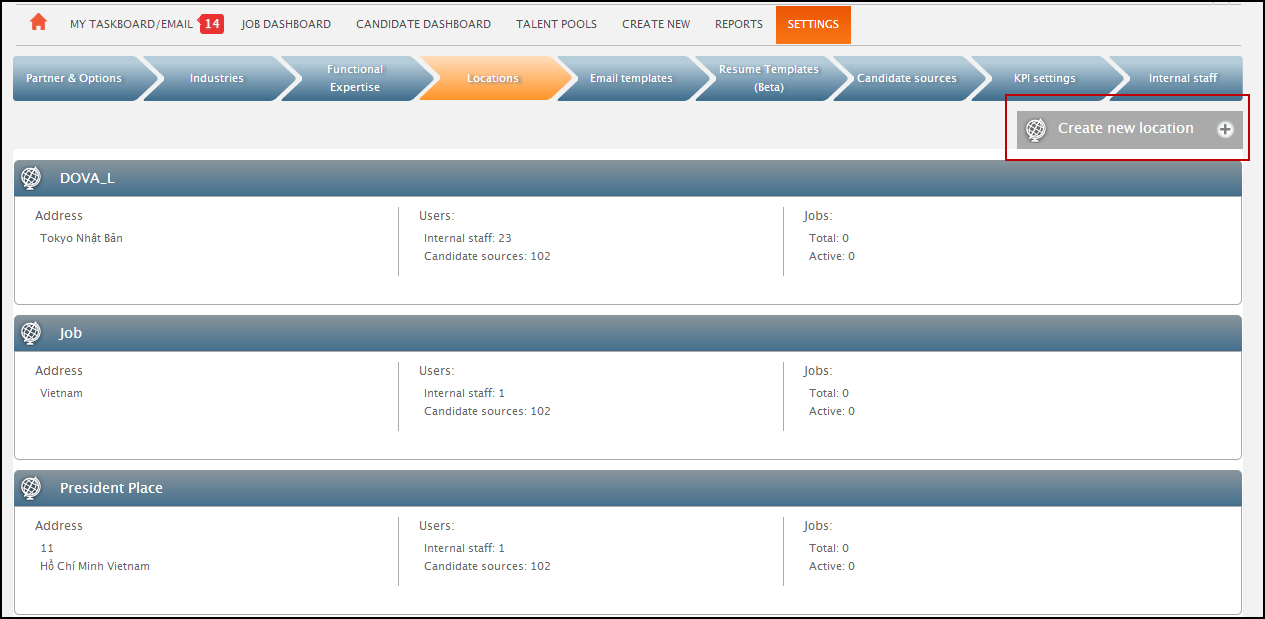 3. If there are existing job and/or user associated with this location, you need to select one to merge. Select location and click "Merge".