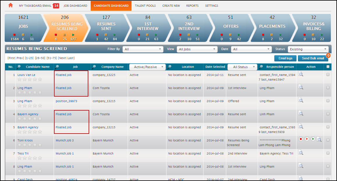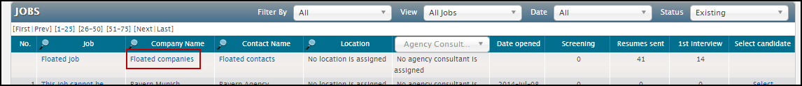 As floated candidates are not associated with any particular job, we have introduced the concept of a ‘floated job’. This is a generic job that all floated candidates will be attached to, until they are attributed to a real job.