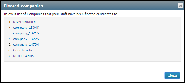 3. Click "Floated companies" to see the company that staff have been floated candidates to.