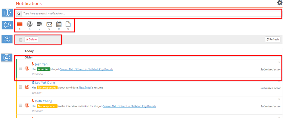 The Notification feature has been added so that you can stay on top of any incoming emails or action taken by candidates and contact during the job. Previously, StaffingBoss users had to keep track of all emails and check the status of emails from time to time. This new feature eliminates the hassle and the notification tab flags up incoming emails/activities.