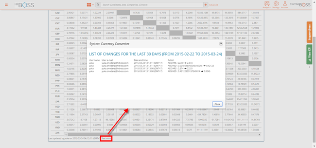 Click the relevant field and key in the new value to edit. The value will be automatically saved once the your mouse is not in the cell. This activity will be recorded in the history so click on ‘See more’ if you wish to do so. It will tracked against the StaffingBoss user, email, date/time and action.