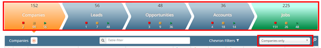Different from the chevron view of ATS, CRM contains two chevron (company and contact) at each stage. From this release users are able to choose whether to view only company, only contact or both chevron at the page based on the setting.