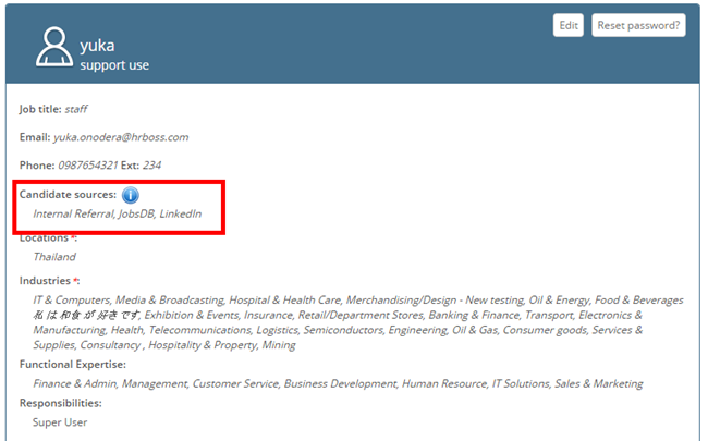 When you create a job or edit an existing job and want to select candidate source for the job, you are only able to see the list of candidate source that has been assigned to the you. This is defined at the user setting page of “Settings” – “Internal Setting”.