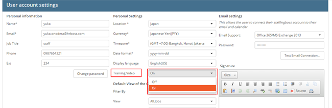 Newly created user will have the setting to show the training video tab which leads to the video. When you think you have learned enough, the training video tab can be hidden at the “User account setting” page or “Internal staff” page by setting the option as “Off”.