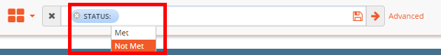 Met. StaffingBoss users needed to first select the category of ‘Status’ and select ‘ Not Met’ from the
