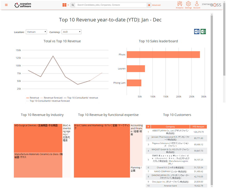 - Top 10 Revenue year-to-date (YTD): Jan - Dec
