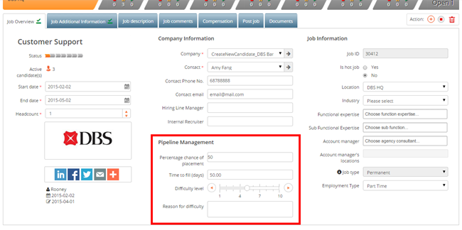 From the job details page, you are now able to indicate the probability of closing the deal as part of the new pipeline management feature.