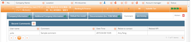 At the company detail page, Company comments tab is added. Here the users are able to save/view comments related to this company.