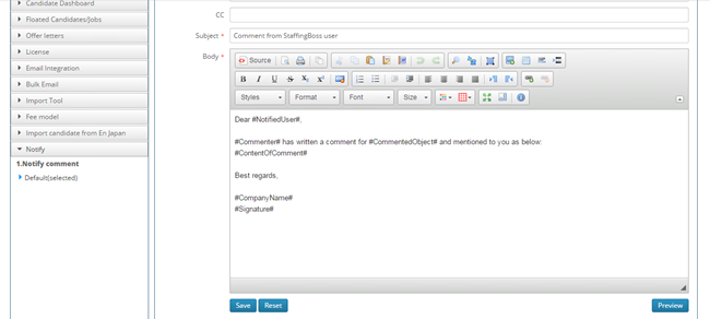 In this release, StaffingBoss now allows the user to easily send comments to other StaffingBoss users i.e Internal Staff by using notify functionaility at comment section.