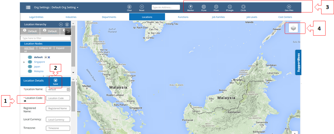 1. Eye icon: to pull a reference list where to select the Location code in the relevant workspace